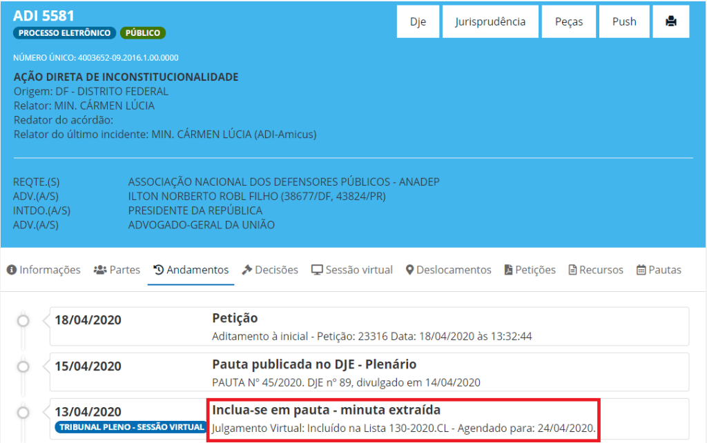 O Supremo Tribunal Federal deverá julgar virtualmente na próxima sexta-feira, 24, a Ação Direta de Inconstitucionalidade nº 5581, sob relatoria da ministra Carmem Lúcia.