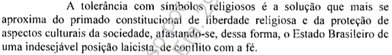 Na fundamentação da decisão, aquele Tribunal chegou a enfatizar que o Brasil não adota uma posição laicista (há diferença entre laicidade e laicismo), que conflita com a fé: