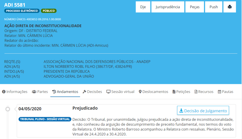 O STF não chegou a analisar o mérito da ação, que foi rejeitada à unanimidade por problemas formais – entre os quais, a falta de legitimidade ativa da ANADEP para propor a demanda.